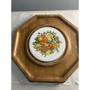The Vintage Goodwood Teak Wood Cheese Board with Heavy Glass Dome Charcuterie from the 1970s is a stylish and unique serving tray perfect for all occasions. Made of medium brown wood, this one-compartment board features a multicolor lid made of glass. With a diameter of 12 inches and a height of 7 inches, this original piece from Goodwood exudes a retro 1970s style. Hand wash only to preserve its wood-finished look, this Thai-made vintage charcuterie board is a charming addition to any home or dining table.