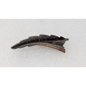 Timeless and elegant, this vintage Goody hair clip features intricate bronze floral leaf design, accented with yellow rhinestones for a sophisticated look.