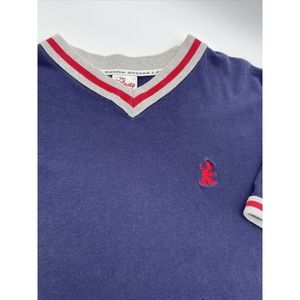This vintage Disney Store T-shirt in size 2XL features the beloved character Goofy in a blue color. The short sleeve shirt has a V-neckline and is machine washable for easy care. It is perfect for fans of Disney movies and cartoons, with a theme that is sure to bring back fond memories. The shirt is pre-owned and has a regular fit, making it a great addition to any men's wardrobe.