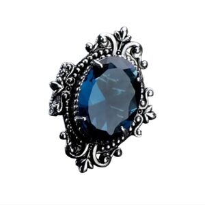 Vintage Goose Oval Dark Blue simulated Topaz Ancient Silver Ring