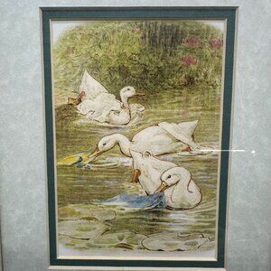 Vintage Goose Picture Wooden Frame Beatrix Potter Cottage Wall Hanging Stand Up