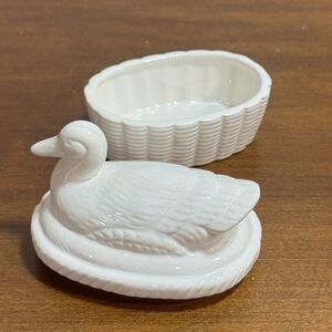 Vintage Goose on Nest White Ceramic Japan Covered Duck Hen 3.5"