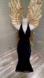 This is a true classic from Cache, known for their incredible special occasion wear. It features a sophisticated halter neckline with a beautiful twist rhinestones detail at the bust, flowing down into a graceful silhouette that's just perfect for making an entrance,with a tule tail. And check out that gorgeous open back, highlighted by a dazzling rhinestone band.