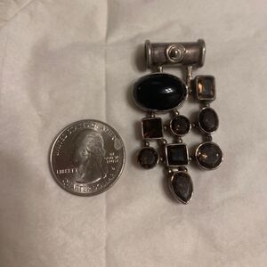 Vintage Gorgeous Real Sterling Silver and Onix Smoky Topaz Gems Handmade Pendant