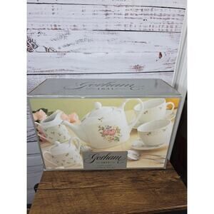 Vintage Gorham Lady Anne Pink Rose tea set complete and NIB