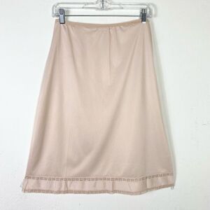 Vintage Gossard Tan Beige Lace Trim A Line Midi Slip Skirt Size M