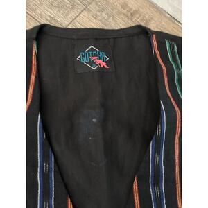 Vintage Gotcha Black Striped Boho Button-Up Waistcoat Vest large