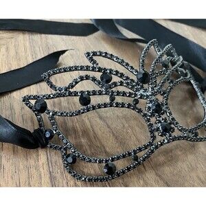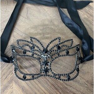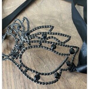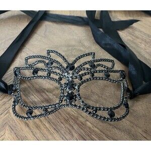 Vintage Gothic Masquerade Mask Black Rhinestone Crystals Metal Dark Fairy