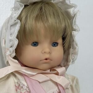 Vintage Gotz Baby Doll Blonde Blue Eyes Dress Bonnet Götz-Puppe Sleep Eyes Tag