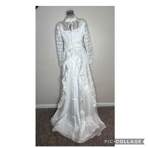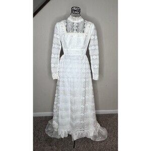 Vintage Gown Lace Victorian Prairie Style High Neck Wedding Dress PLS READ