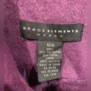 Vintage Grace Elements Women’s Purple Soft Warm Wool Coat Crop Large (16w) EUC