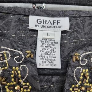 Vintage Graff Beaded Embroidered Tie Rope Belted Tunic Top Size L Black Gold