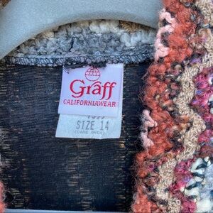 Vintage Graff California chevron print heavy knit wool mohair Cardigan jacket 14