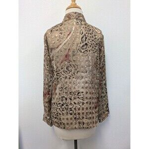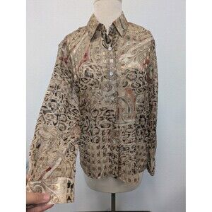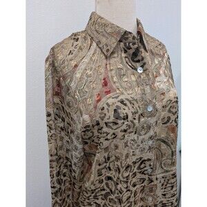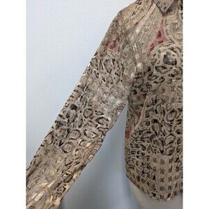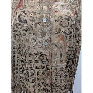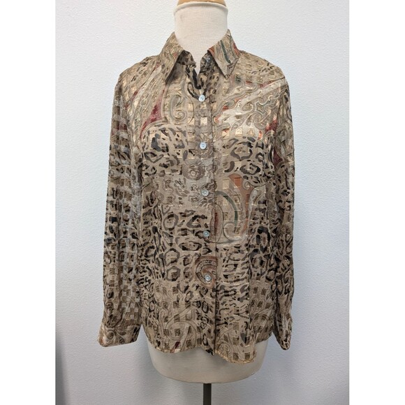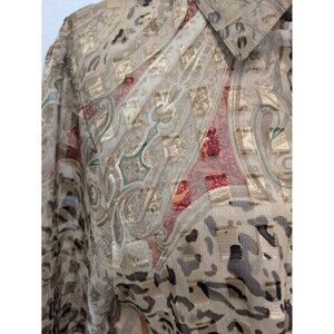 Vintage Graff Sheer Animal Print Gold Thread Square Blouse Top sz M Retro Boho