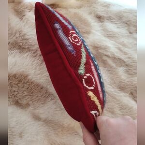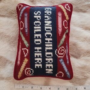 Vintage "Grandchildren Spoiled Here" Mini Red Pillow Wool Stitch with Filling