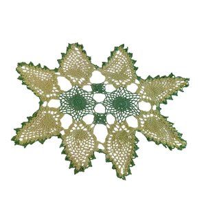 This Handmade Vintage Grandma's Hand Crochet Doily Table Topper is a unique, 14" 2 Tone Green piece. Handcrafted from cotton, it adds a stylish vintage charm to any table setting.