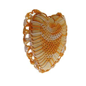 This vintage Grandma's Hand Crochet Pillow Pincushion is a delightful handmade item in variegated orange. Measuring 20.5", this cotton pillow is a testament to traditional craftsmanship.