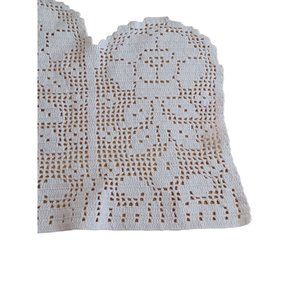 Vintage Grandma's Hand Crochet Tiered Roses18.5" x 12" Handmade White Table Top