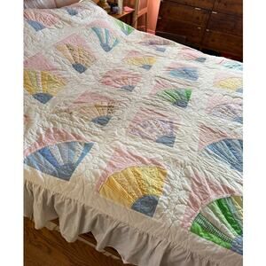 Vintage Grandmother's Fan Quilt Handmade Handstitched Beautiful Pastel Cottage
