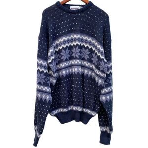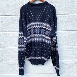 Vintage McGregor Acrylic Fair Isle Blue Sweater Men’s Size XL. Snowflake design. In good condition, no stains or rips. Laying flat measurements: 30” long, 25” across armpit to armpit, 29” sleeve.