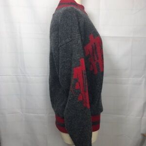 Vintage Grandpa sweater 70% wool Sz L gray/red