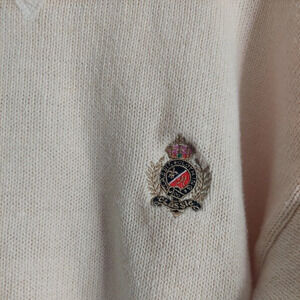 Vintage Grandpacore Knit Sweater Large Embroidered logo Cream Preppy