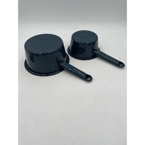 Vintage Graniteware Blue & White Speckled Nesting Saucepans Set Of 2