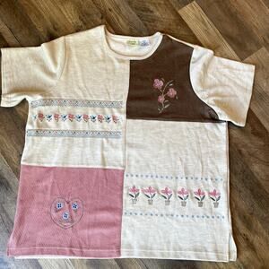 Vintage Granny Core Embroidered Cottage Patchwork Crewneck Top 2X