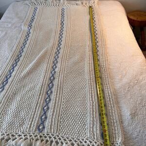 Vintage Granny Popcorn Crochet Throw Blanket Shawl Fringe Hand-made