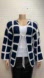 Vintage Granny Square Cardigan Sweater Crochet Tie Closure Navy -White size XS