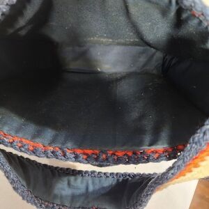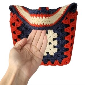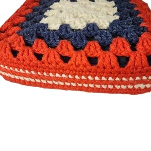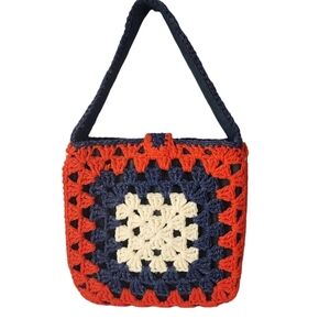 Vintage Granny Square Crocheted Yarn Tote Bag Structured Purse