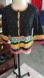 Sweaterbody black and the decorative crochet and beads are red, turquoise blue, yellow, orange and pink