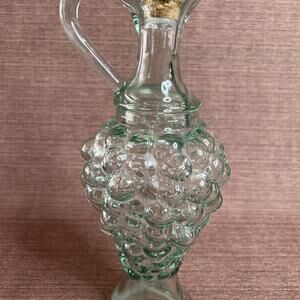 Add a splash of European charm to your bar cart with this mid-century grape cluster decanter, crafted from pressed glass and imported from Spain. Featuring a sculptural grape motif in a soft aqua or clear tint, it’s a standout piece for collectors and entertainers alike. The original stopper (or a replacement cork) completes its vintage appeal.