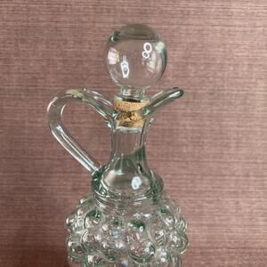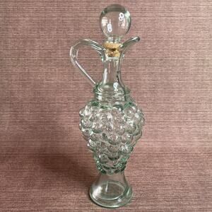 vintage grape cluster decanter, glass of spain barware, mid century pressed glass bottle, spanish glass wine decanter, knobler grape bottle, aqua glass decanter, retro bar cart decor, collectible glass of spain, embossed grape cluster bottle, vintage wine decanter with stopper