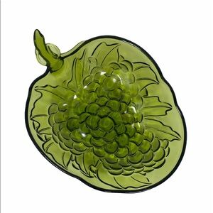 Vintage Grape Design Green Glass Fruit Bowl Large