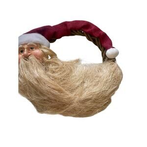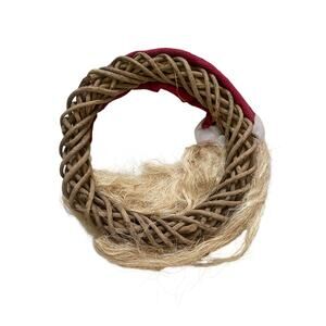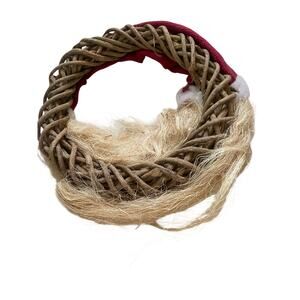 Vintage Grapevine Santa Claus Folk Art Handmade Christmas Wreath Moon Jute Beard