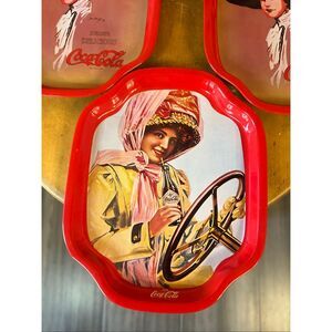 Vintage Graphic Design Coca Cola Trays Lot Of 4 Made In Hong Kong 6” x 7.5” Red minor wear see photos (5384)
