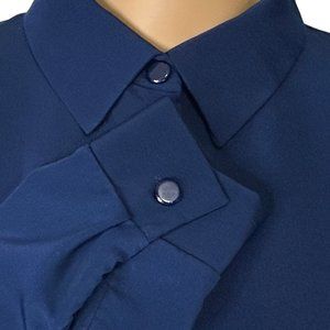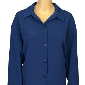 Vintage Graver Studio Womens L Blue Button Up Blouse Shirt Pants Outfit Set