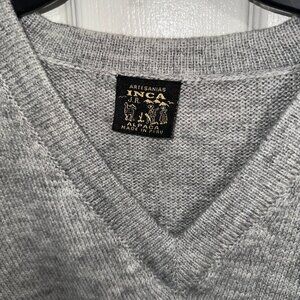 Vintage Gray Alpaca Wool Sleeveless V-Neck Sweater Vest Made In Peru