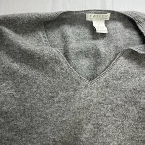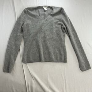 Vintage Gray Cashmere Sweater V-Neck 90s Tweeds Women Sz - L