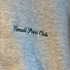 Experience ultimate comfort with this Fruit of the Loom crewneck sweater, featuring a classic gray hue and ribbed cuffs for a snug fit. Made from a soft cotton blend, this sweater offers a cozy feel perfect for everyday wear. Its simple design ensures versatility, making it a staple piece in any casual wardrobe. Has embroidery on the front from the Small Point Club in Maine.