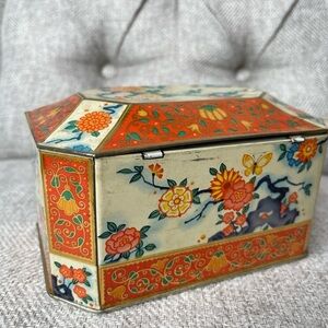 Vintage Gray Dunn Biscuit Tin Floral Orange Metallic Product of Scotland.