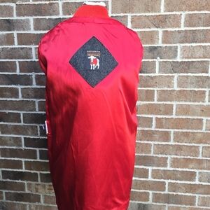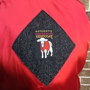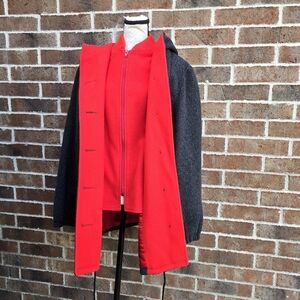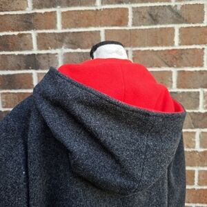 Vintage Gray Hooded Wool Coat with Red Interior Trim