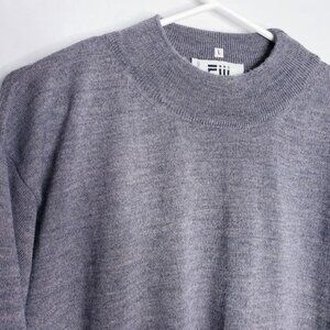 Fiji Vintage Lightweight Mock Neck Slouchy Pullover Sweater. Gray with tan undertones. Wool/acrylic. Good pre-owned condition. No flaws to note.