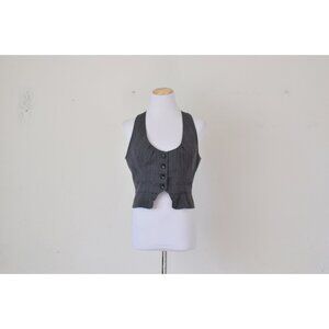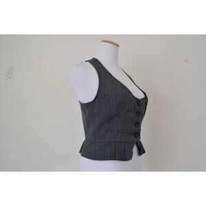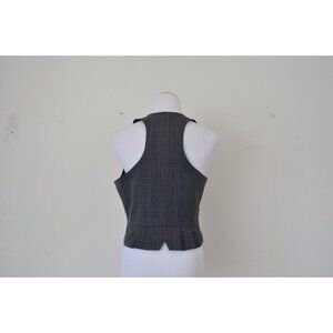 Vintage Gray Poly/Rayon/Spandex Plaid Crop Vest | size L