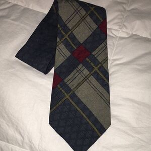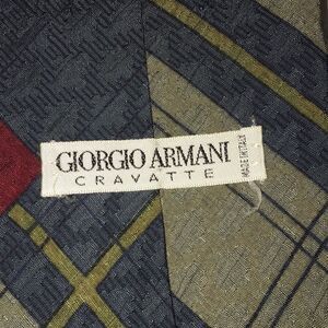 Vintage Gray & Red Giorgio Armani retro Geometric silk print theme sewn neck tie