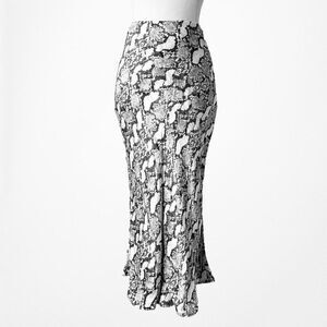 Vintage Gray Satin Animal Snake Print Flowy High Waisted Midi Skirt Size 2/XS