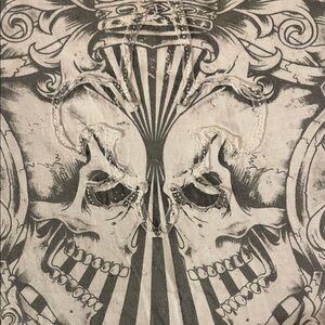 This Vintage gray tee showcases a striking gothic-inspired design, featuring intricate scrollwork and a central cross motif. The short sleeves and soft fabric make it perfect for casual outings, while the bold white artwork adds a touch of elegance to your wardrobe.#3