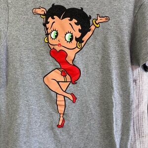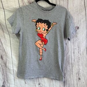 Vintage Gray T-Shirt with Betty Boop Character Graphic Design Small