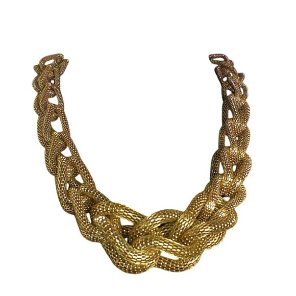 Vintage Graziano CN Gold-Tone Braided Statement Necklace Italy